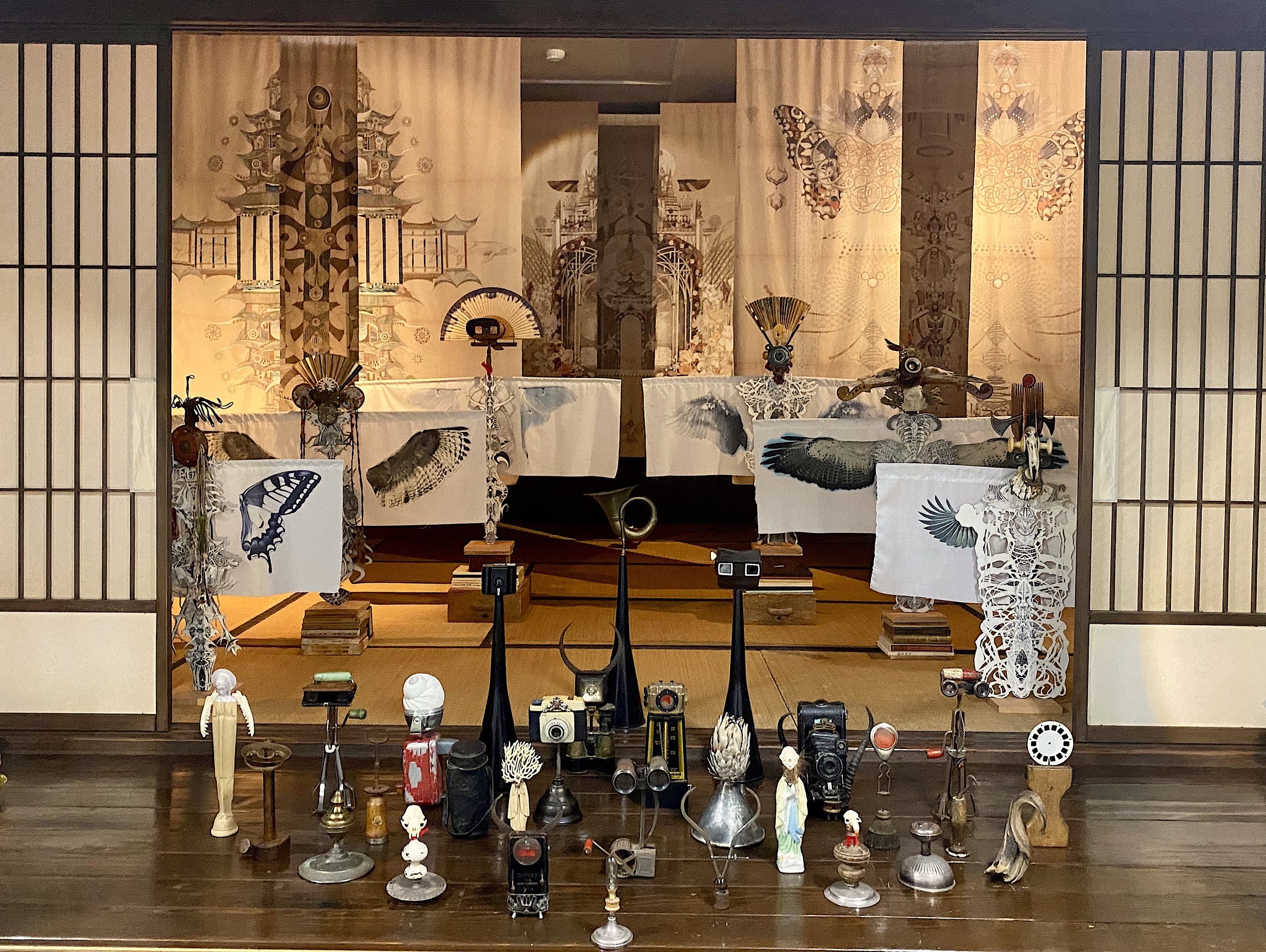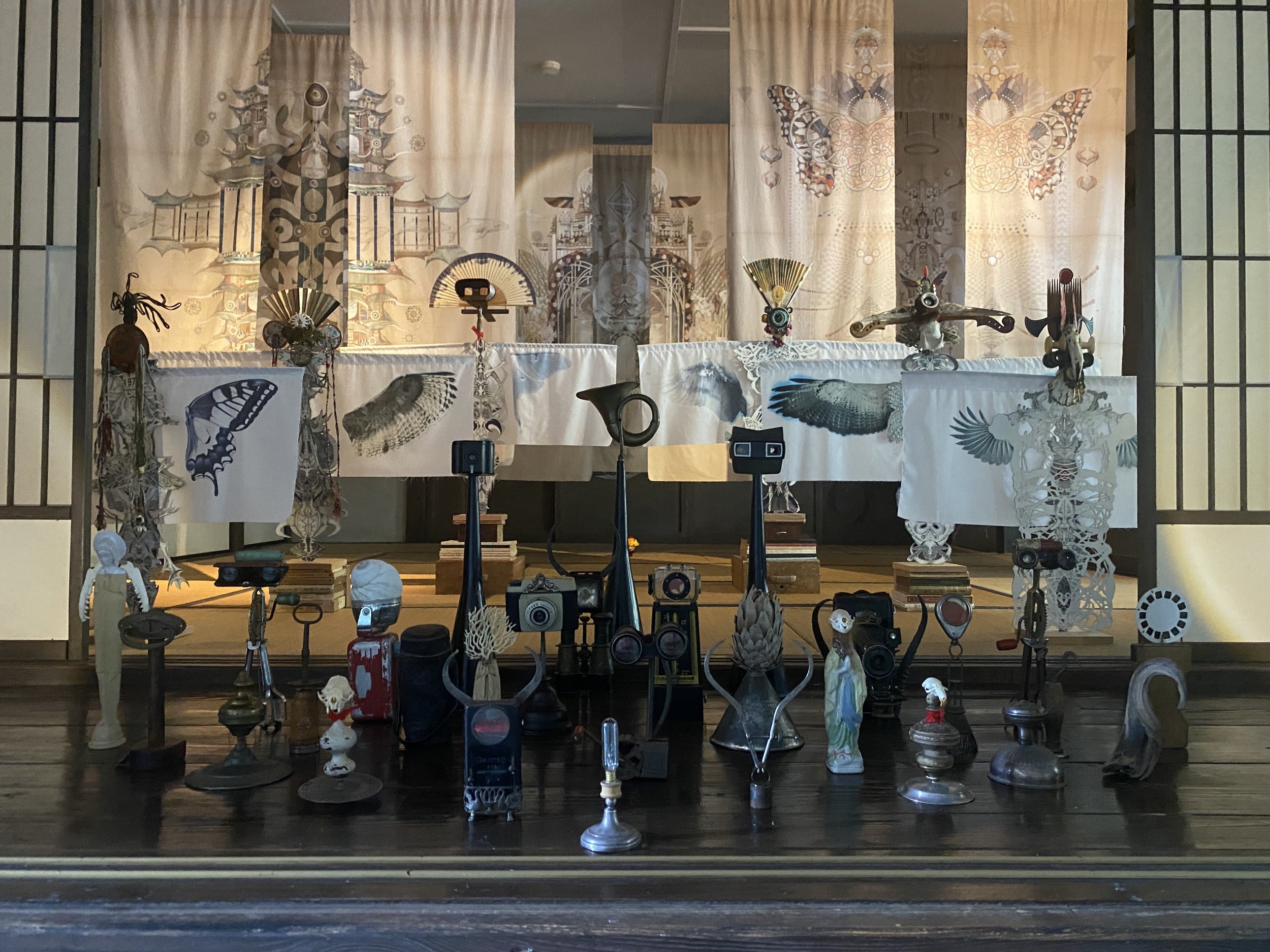Sanctum is an immersive installation set within a traditional Japanese room built inside another room. This inner room hovers—like a stage, an altar, a dream—an echo of a meditation mind, held slightly apart from the ordinary world.